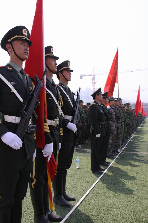 上午10時(shí),點(diǎn)驗(yàn)大會在嘹亮的軍歌聲中拉開序幕。預(yù)備役官兵軍容嚴(yán)整,雄姿勃發(fā),精神抖擻,士氣高昂,充分展示了當(dāng)代預(yù)備役軍人的良好精神風(fēng)貌,展現(xiàn)了部隊(duì)良好的軍政素質(zhì)和優(yōu)良的戰(zhàn)斗作風(fēng)。3名儀仗隊(duì)員護(hù)衛(wèi)著軍旗,邁著矯健的步伐從主席臺南側(cè)走到隊(duì)列北側(cè)。1500余人的預(yù)備役軍人身著整齊的軍裝,按照各自編制,在操場排成整齊的方隊(duì),接受了首長的檢驗(yàn)并進(jìn)行了宣誓儀式。點(diǎn)驗(yàn)結(jié)束后,預(yù)備役官兵進(jìn)行了擒敵拳、盾牌警棍術(shù)和防爆隊(duì)形等三個(gè)科目的匯報(bào)演示。通過集結(jié)點(diǎn)驗(yàn),鍛煉提高了團(tuán)首長機(jī)關(guān)和營連各級指揮員的組織協(xié)調(diào)能力,探索研究了組織全團(tuán)集結(jié)點(diǎn)驗(yàn)的方法路子,錘煉了部隊(duì),強(qiáng)化了作風(fēng),有效提高了部隊(duì)快速動(dòng)員和隨時(shí)應(yīng)召的能力。