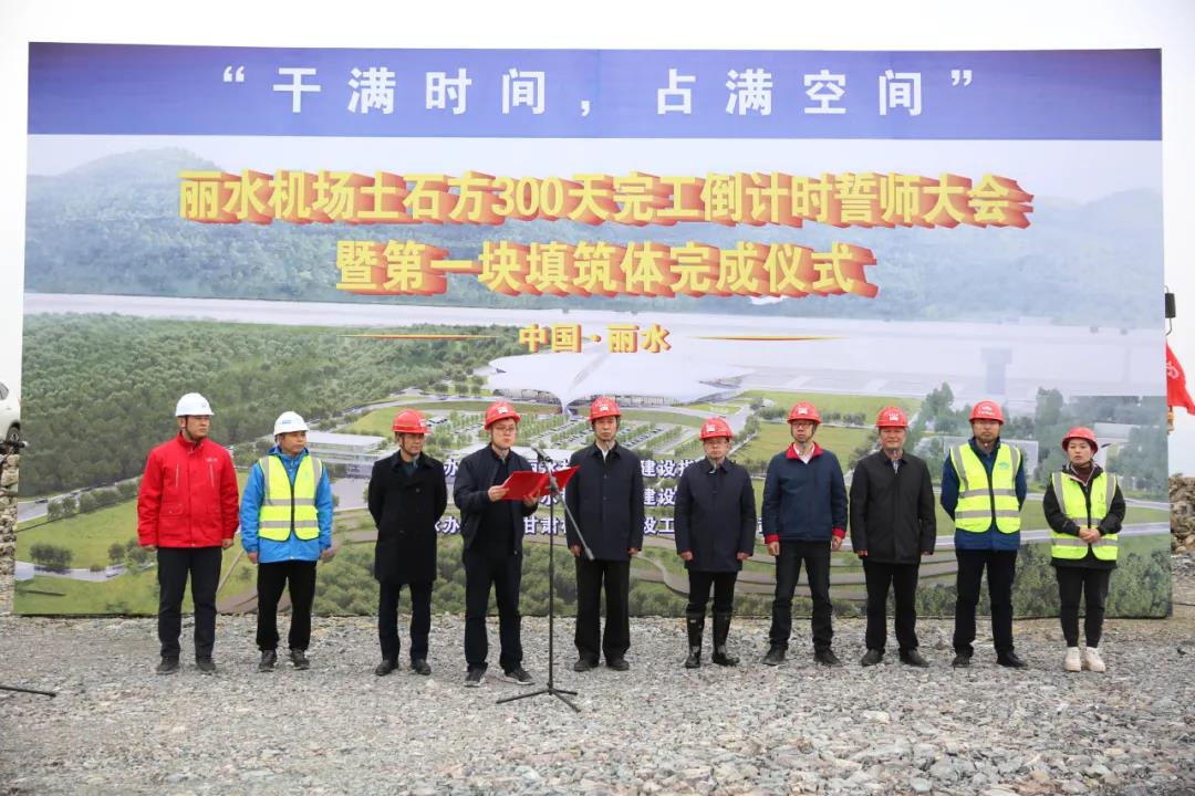 11月22日下午,麗水機場舉辦土石方300天完工倒計時誓師大會暨第一塊填筑體完成儀式。由我司承建的麗水機場(第一批)02標段主體第一塊填筑體于本月順利完成 。