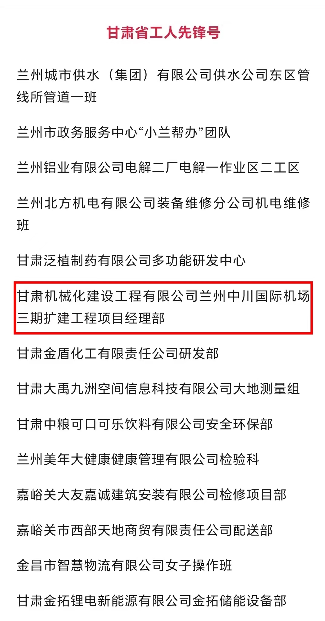 近日,甘肅省總工會發(fā)布了2024年甘肅省“五一勞動獎和甘肅省工人先鋒號”擬表彰對象的公示。我司蘭州中川國際機(jī)場三期擴(kuò)建工程項目經(jīng)理部被授予“甘肅省工人先鋒號”,該獎的獲得既是對項目團(tuán)隊長期拼搏奮斗的肯定,也是對公司“和諧共進(jìn)、追求卓越”企業(yè)精神的肯定。